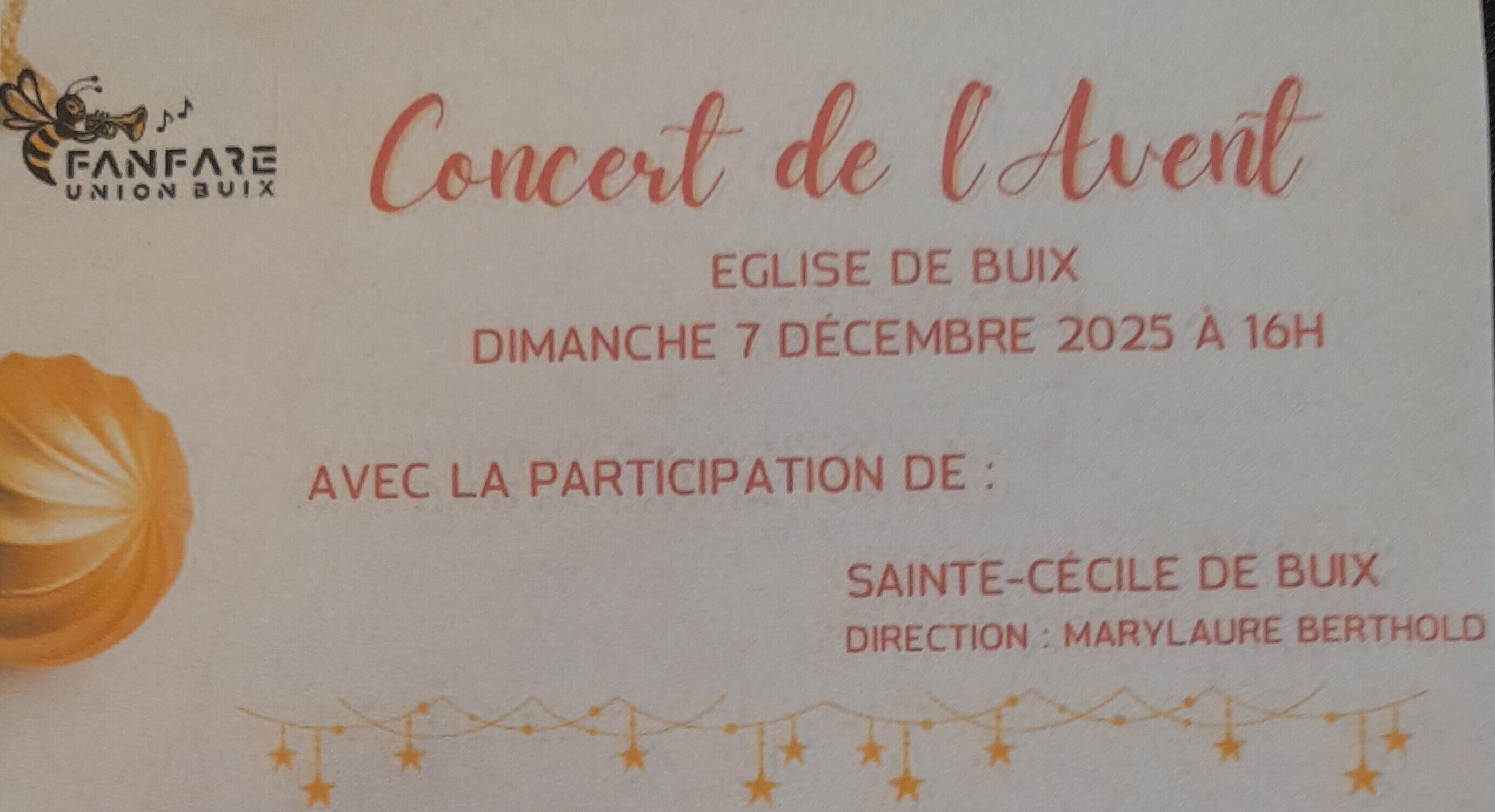 La fanfare Union Buix vous invite à son concert de l’avent le dimanche 7 décembre à 16h à l’Eglise de Buix